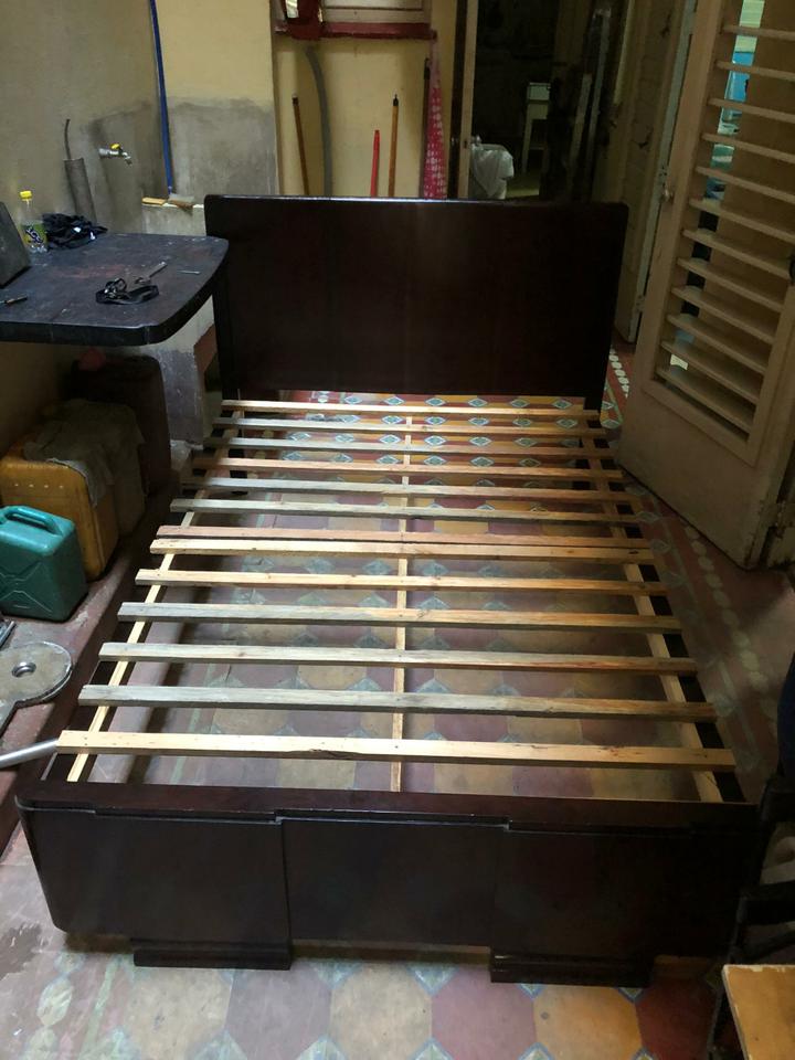 Cama camera de los Años 50 de caoba, acabada de restaurar. Tiene su bastidor de madera.