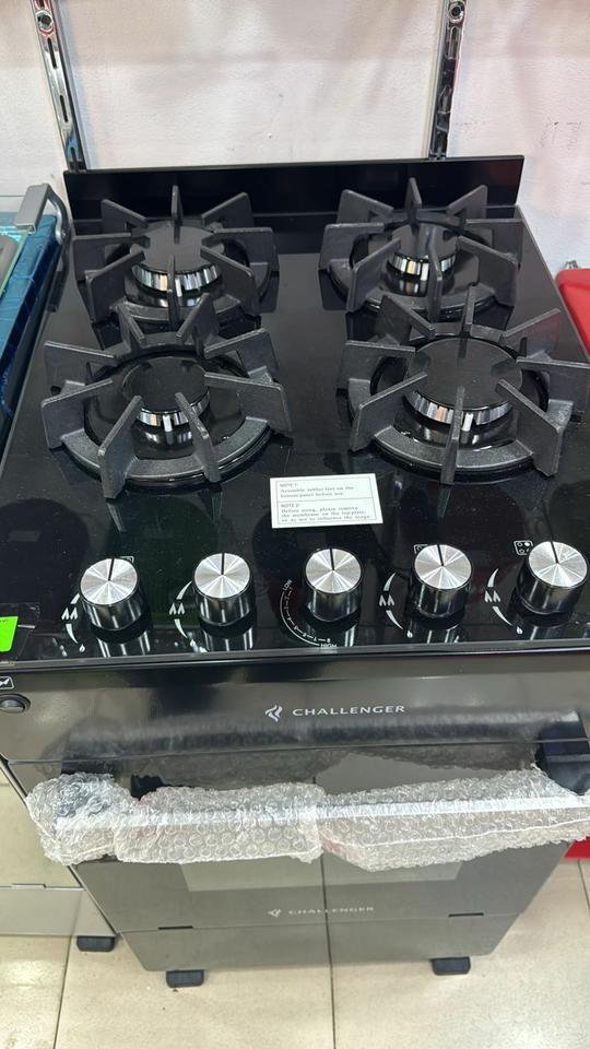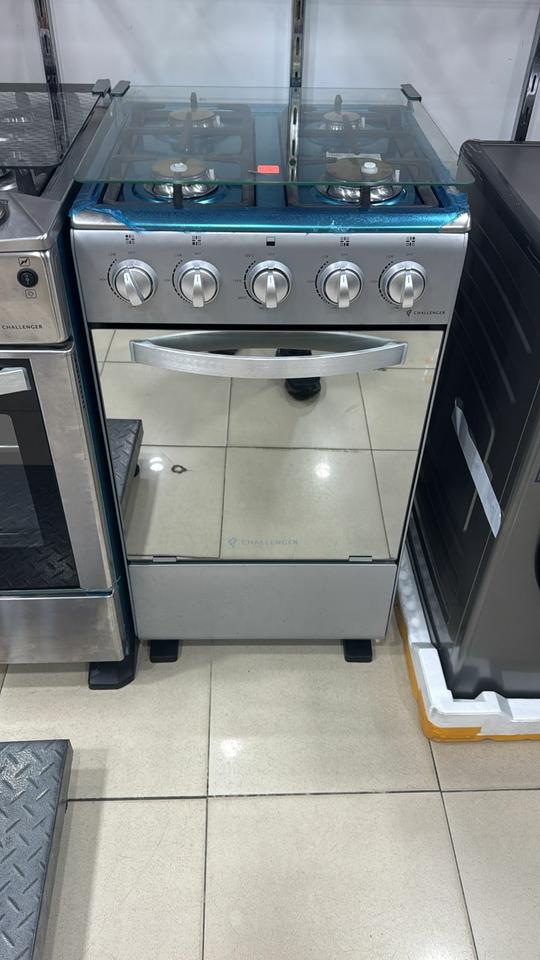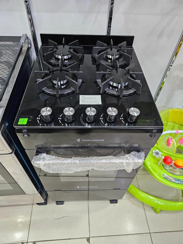 El otro modelo es negro templado, también de 4 hornillas, semi profesional, superficie de cristal y quemadores superiores. Precio: 260 usd.(Modelo negro agotado)