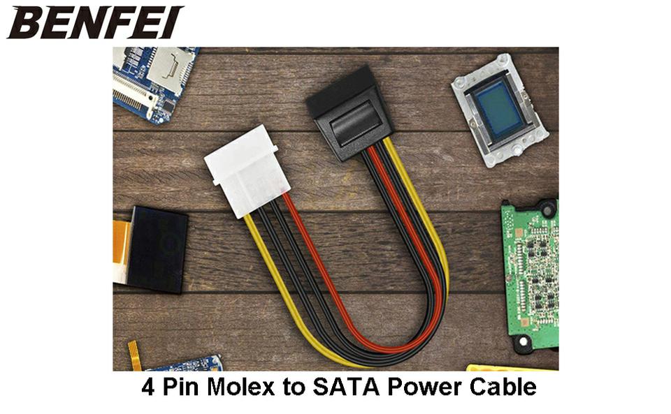 El cable de alimentación Molex a SATA de 4 pines BENFEI es un asistente maravilloso al construir, actualizar o reparar sus computadoras. Conecta los últimos discos duros o unidades ópticas Serial ATA a una fuente de alimentación con puertos Molex LP4 heredados; El cable Molex macho a hembra a SATA con conectores rectos es la longitud perfecta de 25 cm para la gestión interna de cables