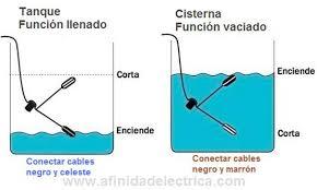 El flotador cuenta con un contactor que al estar suspendido en el agua quitará la corriente a la bomba, al estar colgando sin agua le entregará energía a la bomba para que ésta llene el estanque.