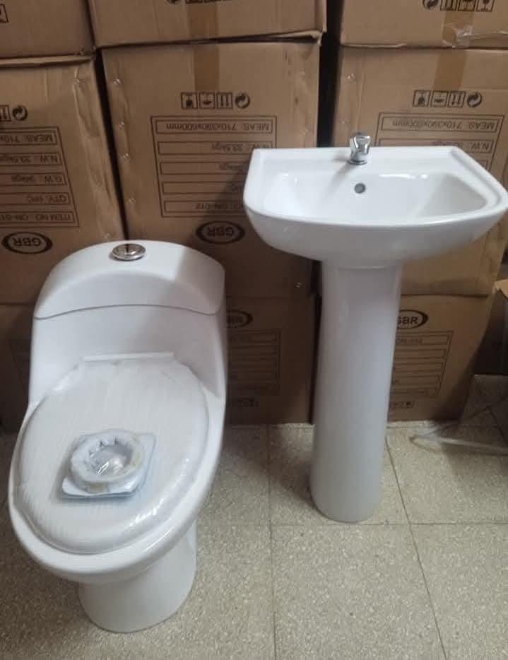 Juego de baño monolítica con lavamanos y pedestal,nuevo en caja con transporte incluído llame o escriba por Whatsapp 52427807