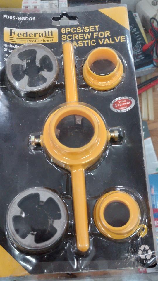 Juego de herramientas de rosca de PVC (6 piezas), • Material: Aleación y plástico, • Tamaños: 1/2", 3/4" y 1"