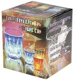 Se enciende con luces de colores cambiantes cuando se vierte líquido en él.
