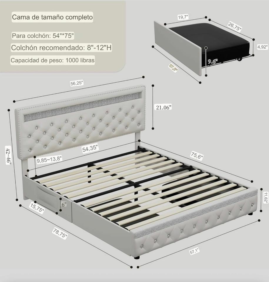 Cama camera original importada con luces led y gavetas