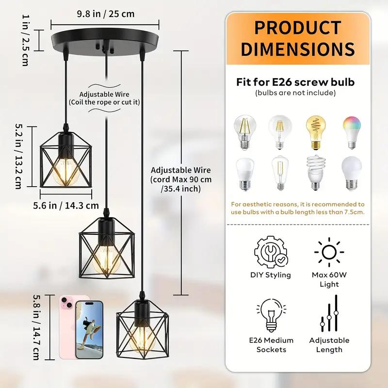 Lámparas Colgantes Industrial Vintage Ajustables - $30