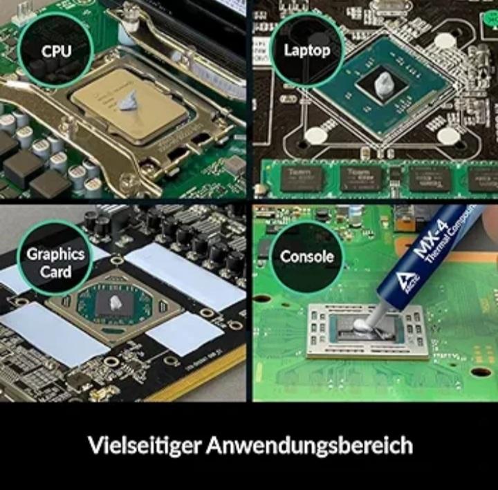 El compuesto ARCTIC MX-4 está compuesto por micropartículas de carbono que conducen a una conductividad térmica extremadamente alta. Garantiza que el calor generado por la CPU o la GPU se disipe de forma rápida y eficiente, incluso adecuado para overclocking. Magnífico en rendimiento, MX-4 se encuentra entre los compuestos térmicos, pasta térmica o grasa térmica superior del mercado.
