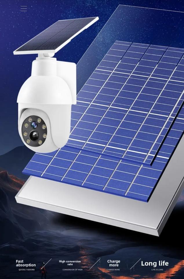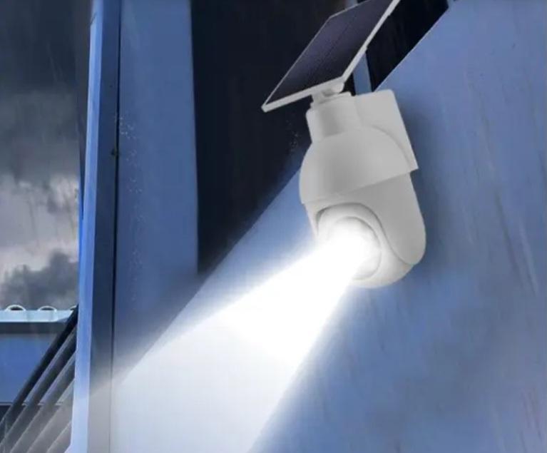 Lámpara solar Tipo cámara, con sensor de movimiento. Al detectar presencia LED rojo parpadea tal y como si estuviera grabando