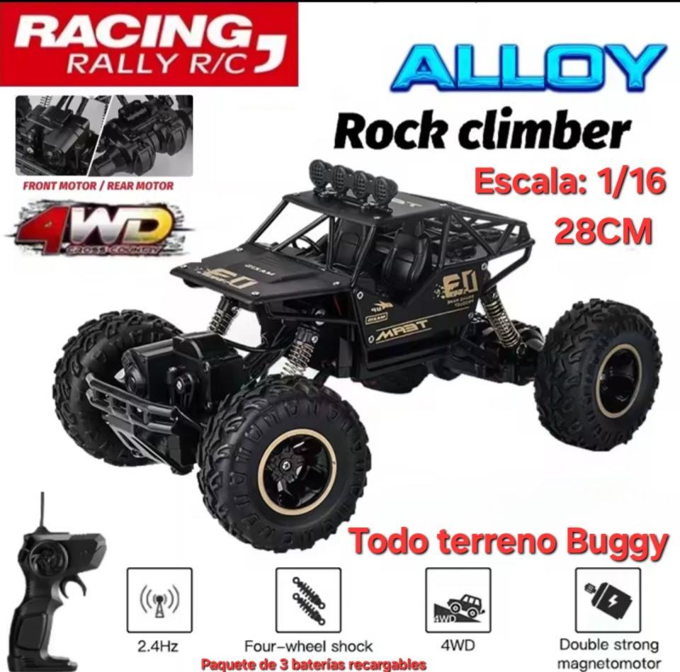 Buggy 4x 4 a Control Remoto frecuencia 2.4ghz, con paquete de batería de 3 baterias recargables para más duración del entrenamiento. Gomas de caucho y amortiguadores. velocidad máxima de 30km/h. Alcance mayor de los 50m.