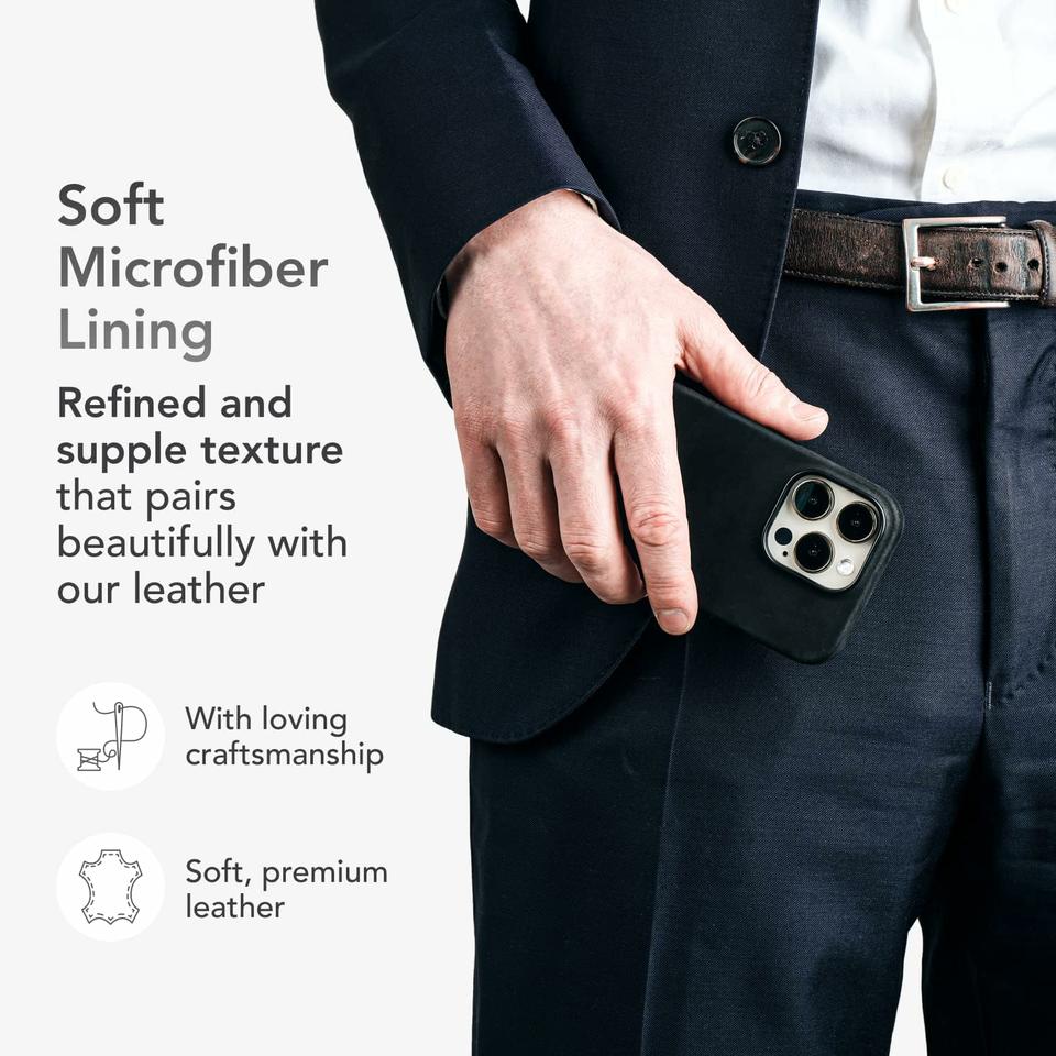 Funda de cuero para iPhone 14 Pro Max - Cuero clásico con forro de microfibra antirrayas