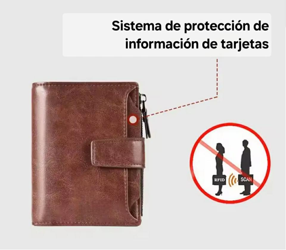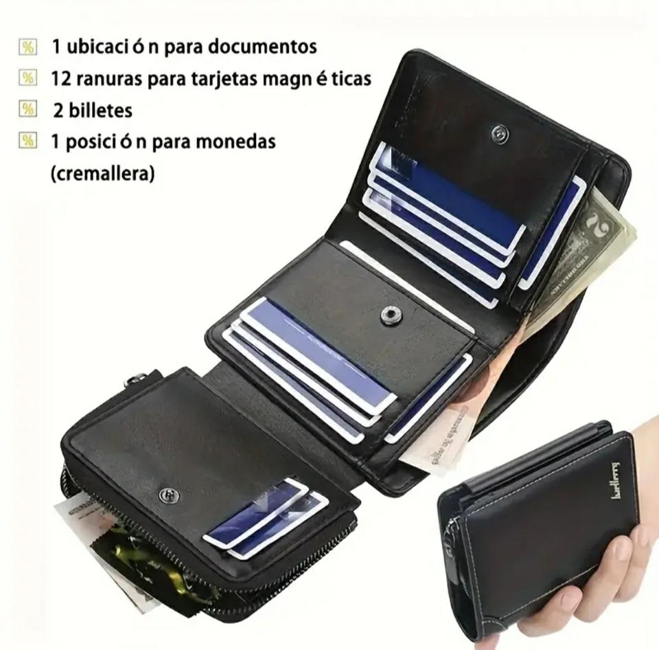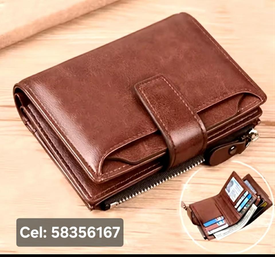 Billetera de cuero de múltiples compartimento en excelentes material. Monederos, porta carnet, portabilletes, porta fotos, sistemas de seguridad con broches, zeppers y más.