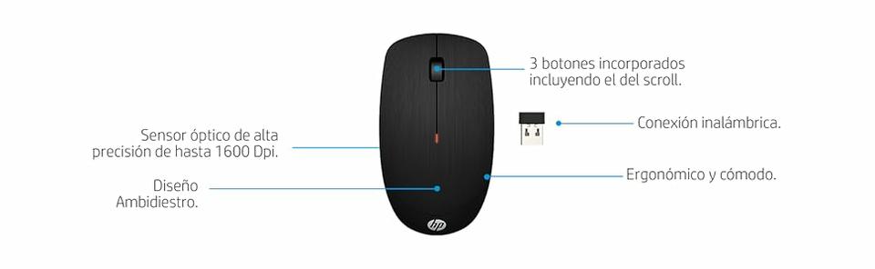 HP Mouse Inalámbrico X200, Conexión Inalámbrica de 2,4 GHz, DPI Ajustable, Negro (6VY95AA)+pila 3